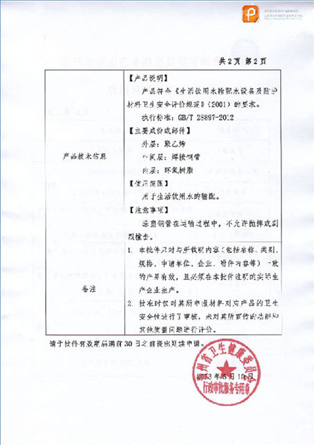 貴州省涉及飲用水衛(wèi)生安全產(chǎn)品衛(wèi)生許可批件